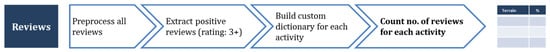 - In [], the authors included detailed step-by-step text and sentiment mining processes for generating similar insights, although the scope was restricted to hotel reviews only;