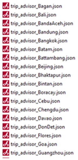 At a tactical level, big data refer to “datasets which could not be captured, managed and processed by general computers within an acceptable scope” []. At a more strategic level, big data represent the “information assets characterized by such a high volume, velocity, and variety to require specific technology and analytical methods for their transformation into value” []. Travel industry players such as travel suppliers, online travel agencies, and global distribution systems can access an extensive amount of data that are captured during normal business interactions across the travel value chain []. Furthermore, players from the closely related industries, such as the airline, hotel, and food and beverage industries, also hold rich information. While these information sources cannot be mapped at a user level, an accurate augmentation of core travel-related data is possible on the basis of a destination or a specific tourist attraction. Lastly, another significant proportion of travel-related information can be obtained from external sources such as travel blogs, online travel reviews, and social media posts as user-generated content. Such content can take different forms including texts, images, or videos.