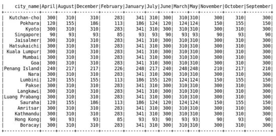 Velocity: Velocity in the context of tourism data can be interpreted in two ways, i.e., the speed of input data generation and the speed of responsiveness [] The former includes capture, storage, and analysis [,]. In general, a little loss in velocity for improved business value is acceptable in practical situations [,].