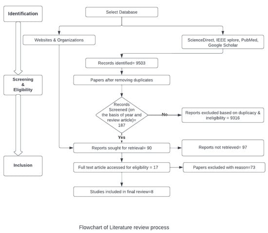 - Round 1—An electronic search was conducted to identify and categorize the literature review related to primary studies. The title, abstract, and introduction were read to narrow down the selection of relevant papers, thereby removing the irrelevant studies.