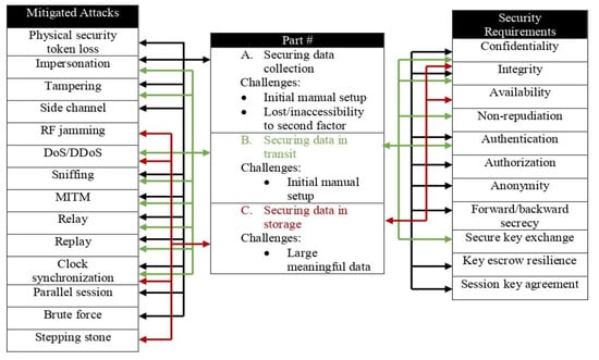 - Data leakage and privacy—Compilation and storing of an individual’s health and movement records should conform to legal and ethical laws on privacy. Owing to the transparent and accessible nature of wireless messages, IoMT systems are also more likely to suffer from data leakage through sniffing attacks, and these include eavesdropping, traffic analysis, and brute force attacks (trial and error to guess login info) [52].