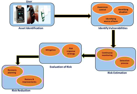 - In the context of security risks to IoMT devices, confidentiality pertains to safeguarding the medical information that a patient shares with doctors. This information must be protected from intrusion, eavesdropping, and organizations that could cause harm to the patient or use the patient’s medical information against him. Integrity safeguards against unauthorized users alerting or destroying patient data, primarily ensuring that they reach their destination intact during wireless transmission. Availability is the efficiency of servers and medical devices to provide for users when required. The system needs to be modified to provide a suspect data storage or transmission channel in the event of a DoS attack [32].