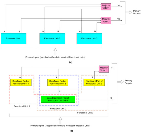 With reductions in transistor size, electronic circuits or systems (henceforth, generically called ‘functional units’) are becoming more susceptible to faults or failures during normal operation [1,2] or as a result of aging [3]. The situation worsens when these circuits and systems are exposed to challenging conditions such as radiation [4,5]. Consequently, it is crucial to safeguard circuits and systems used in safety-critical applications such as space against the risk of faults or failures. In such scenarios, redundancy is commonly utilized to address the occurrence of faults or failures within a predetermined limit.