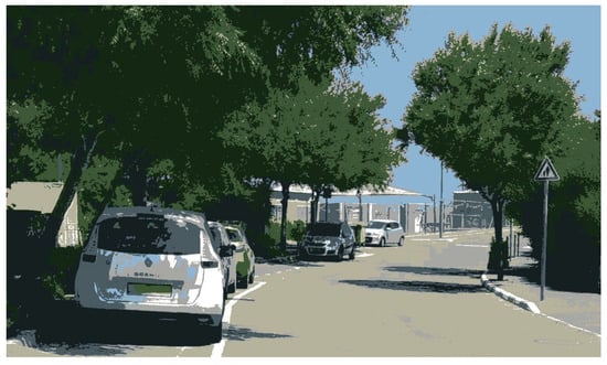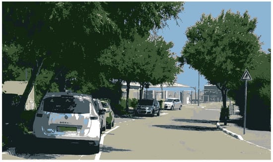 H.264 was designed for the human eye and the quality level that people are able to see [25]. The level of quality that a vehicle needs to provide information for safety and the efficiency of its use is much lower. Actually, H.264 dedicates 24 bits for each pixel in the image, which allows for a very large range of colors and a high-quality image. A vehicle is able to perform well even with a much lower level of image quality. Reducing the number of bits from 24 to 3 lowers the image quality significantly; however, for what a vehicle needs, it is a sufficient quality.