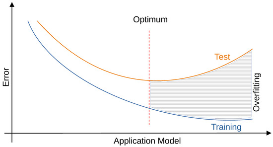 Overfitting in ML, according to [17], represents data behavior when training and test data surpass the optimum mark established by the application model.