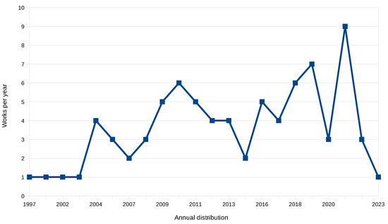Relation of works collected by year, showing the inconsistency of the use of DD analysis among scientific research.