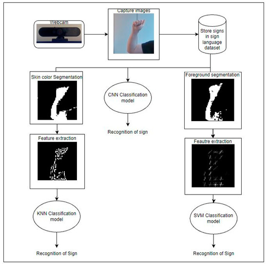 Our literature review revealed several popular machine learning models for sign language recognition. Based on the literature, we chose KNN, CNN, and SVM for our comparative analysis as they represent different paradigms in machine learning and have demonstrated promising results in various applications. Our research aimed to effectively compare these models’ data preparation techniques, accuracy, and computational efficiency when applied to NSL recognition.