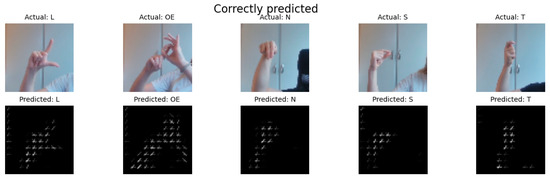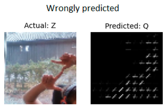 To further confirm the model’s accuracy, we aimed to display correctly and wrongly predicted images. Figure 8 shows randomly selected correctly predicted images, where the actual image is displayed as the original image input, and the predicted image is presented as the image version of the HOG features. Figure 9 displays the wrongly predicted image found in the entire model, highlighting the exceptional overall accuracy achieved by the model.