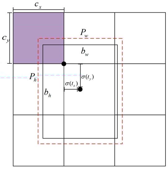 where pw and ph are the width and height of the anchor frame; bw and bh are the width and height of the prediction box; tx and ty are the offset from the anchor frame to the center of the prediction box; cx and cy are the coordinates of the upper left corner of the bounding box; σ() is the normalized function.