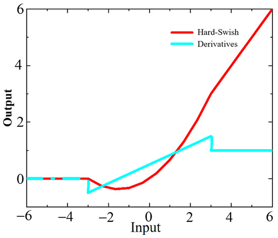 The Hard-Swish activation function is a smooth function with no upper bound or lower bound. The activation function makes the model non-linear, which can effectively reduce the calculation cost in the embedded environment, and the expression is as follows: