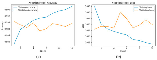 Detailed as Extreme Inception, a deep convolutional neural network architecture introduced by François Chollet, the creator of Keras [68]. The model is based on the Inception architecture but incorporates key modifications to improve its performance and efficiency. Its architecture aims to enhance the depth-wise separable convolutions introduced in Inception modules. In depth-wise separable convolutions, the spatial convolution and channel-wise convolution are decoupled, reducing the number of parameters and computational complexity.