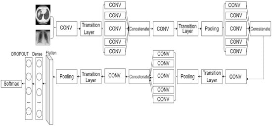 All layers in the proposed model receive input from the prior ones and pass along their feature mappings to all subsequent layers. Instead of adding the layer’s incoming and outgoing feature maps, the proposed method concatenates them. As a result, the proposed model is split up into dense blocks, where the filter numbers may change inside a block, but the feature map dimensions never change. The transition layers, which are the layers between the blocks, go through batch normalization in order to reduce the number of channels by 50%. However, the proposed model requires fewer parameters and allows feature reuse, which makes the networks smaller.