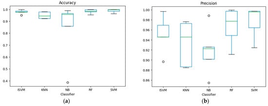 The individual classifier performance for the chest X-ray dataset is shown in Figure 11. The ISVM classifier shows an outstanding performance when compared to the the base classifiers, namely k-nearest neighbor (KNN), naïve Bayes (NB), random forest (RF), and the standard support vector machine (SVM).