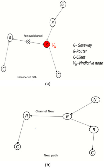 (a) Detection of vindictive node; (b) removal of vindictive node.