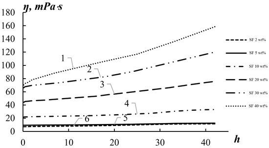 Dependence of the dynamic viscosity of the SF solution on its concentration.