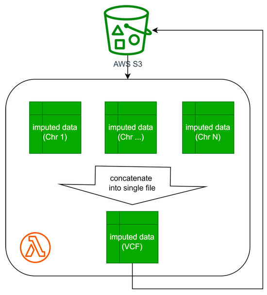 - Data Collection. The final step involves gathering the obtained results and generating the final file (see Figure 4). This operation can be performed using the AWS Lambda service or on one of the nodes using the AWS EC2 service.