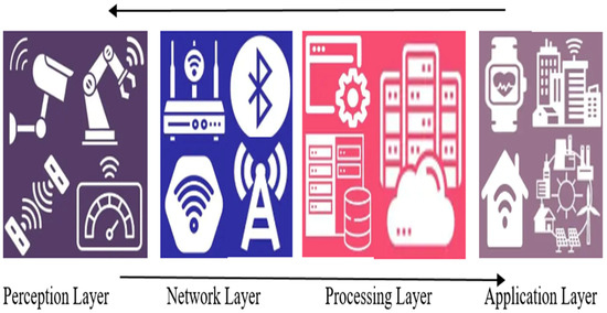When an attacker’s device begins transmitting messages on the target device’s frequency, collisions, and packet retransmissions result. This is known as an interference DoS assault. A fatigue attack is one in which the impact attack lasts until the intended node’s resources for energy run out [82]. If an exhaustion attack compromises a system’s capability to benefit hostile users, this is known as an injustice assault. Frequency-hopping spread spectrum (FHSS) technology is used for efficient protection versus jamming and crash attacks [83,84,85,86,87]. Information transportation assaults, such as sniffing of packets and man in the middle (MitM) attacks, are highly prevalent at both the physical and data-link levels of IoT systems involving wireless sensor networks (WSN) and RFID sensor networks (RRSN). Encrypting information technologies such as the asymmetric encryption standard (AES) in IEEE 802.15.4 and 6LoWPAN systems [88,89,90], wired equivalent privacy (WEP), and WiFi Protected Access II (WPA2) in WiFi and LTE networks [91] are used as solutions against this kind of danger.