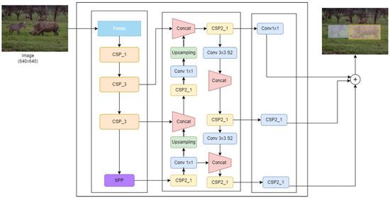 An illustration of the YOLOv5 architecture implemented. It comprises the CSP bottleneck network for the backbone and the path Aggregation net PAN for the neck. The model was trained with YOLOv5s configurations.