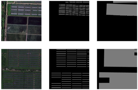 Updated labels exclusively covering the panel surfaces (middle) alongside the original dataset labels (right). The corresponding PV images are shown on the left.