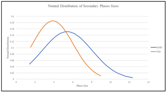 Following the TID process, it was observed that the blocky phases of the material were smaller on average and also occupied a higher area/volume fraction of the material (more widely dispersed), as shown in Figure 9, with regard to the phase size distribution, and Table 7. This may be due to the partial dissolution of the secondary phases during the turning process and subsequent precipitation afterward while cooling down, resulting in the formation of smaller, well-distributed bulk phase sizes.
