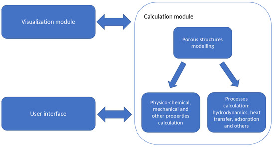 The IAS was developed as a convenient and efficient tool for modeling the porous materials’ structures and properties, which can be used by a wide range of users who do not have programming skills. Figure 5 shows the diagram of the developed software complex.