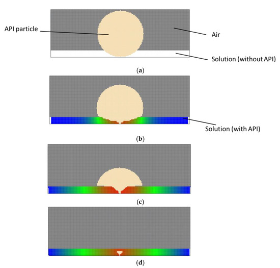 Stages (a–d) of calculating the API particle dissolution.