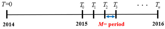 The principle of the extended-window algorithms is to train the prediction models periodically using the accumulated data, as shown in Figure 4, to enable the system to re-estimate the optimal components and PMS at each interval. Suppose the interval length is M, which might be one month, one week, and so on. We set , and the remaining time . The procedures are as follows: