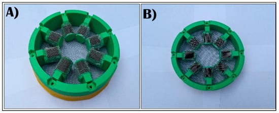 (A) Side view of a single rung of the desiccant wheel. (B) Top view of a single rung of the desiccant wheel.