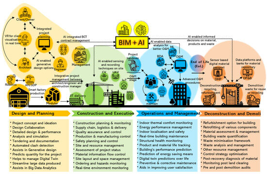- Heidari, A.; Peyvastehgar, Y.; Amanzadegan, M. A Systematic Review of the BIM in Construction: From Smart Building Management to Interoperability of BIM & AI. Archit. Sci. Rev. 2024, 67, 237–254. [Google Scholar] [CrossRef]