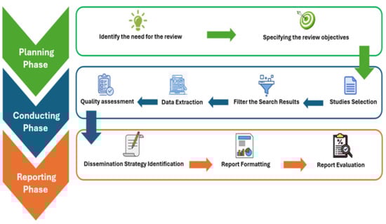 To answer the research questions, a comprehensive and systematic review of recent ML models used for estimating PM concentrations is rigorously conducted. Specifically, we followed the systematic methodology introduced by Kitchenham and Charters [], which encompasses three primary phases: planning, reviewing, and reporting (see Figure 11). This structured approach allowed us to assess all relevant research related to PM estimation in a thorough and organized manner.