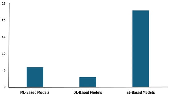- Narrowing down the research scope by selecting terms associated with the proposed solution type, such as Random Forest (RF), XGBoost, Convolutional Neural Networks (CNNs), Deep Learning (DL), Artificial Neural Networks (ANNs), and Support Vector Machines (SVsM).