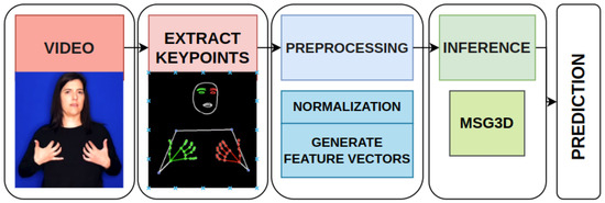 Figure 4 illustrates the standardized pipeline implemented across all experiments described in the following subsection, which involved the three selected datasets: SWL-LSE, WLASL300, and ASL Citizen. For each dataset, keypoints were extracted using the same approach: Mediapipe Holistic with the Heavy model, focusing on the keypoints defined in