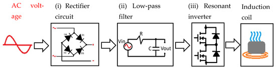 As previously mentioned, commercial induction stove power systems typically feature a rectification stage followed by an inverter. However, significant efforts are being made to connect these two stages by employing a low-to-high frequency AC–AC converter. The development of an AC–AC converter, as illustrated in