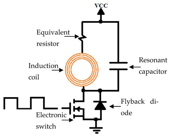 Figure 4, are among the most popular topologies used by researchers and manufacturers of induction stoves. A key characteristic of a class E inverter is the use of a single switch, commonly a MOSFET or IGBT, a Flyback diode to eliminate sudden voltage spikes across the load, and a resonant tank as a load, configurable in parallel or in series. For domestic induction cooking systems, an RLC series network is generally preferred over a parallel network to represent the induction load for analysis and design purposes.