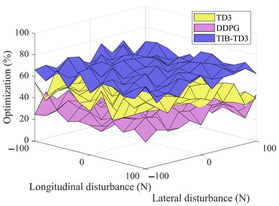 Model-free methods for vehicle control have been applied to address the above-mentioned challenges [,,,,]. Deep reinforcement learning (DRL) combines the advantages of reinforcement learning and deep learning, demonstrating great capability in real-time control [,]. Within the DRL framework, agents are modeled using deep neural networks and continuously interact with the environment and control system. Each action is rewarded based on feedback from the environment, and the training objective is to maximize the cumulative reward over time. Through interaction with continuous state-action spaces [], DRL can adapt to the decision-making requirements of 4WISD vehicles under different external disturbances. While DRL provides flexibility and adaptability by interacting with continuous state-action spaces, it faces substantial challenges in control stability, convergence speed, and generalization to varying environments. These challenges stem from the tendency of DRL agents to overfit to the specific conditions on which they are trained, limiting their ability to generalize to diverse scenarios. Furthermore, DRL’s dependence on large datasets for training can result in instability during the learning process. This issue is especially pronounced for 4WISD vehicles in dynamic or high-dimensional environments.