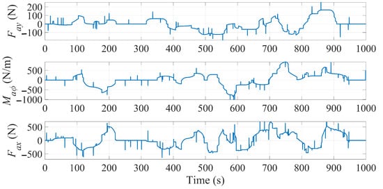which corresponds to the perturbed lateral and longitudinal forces acting on each tire. Note that and represent the longitudinal disturbance force and the lateral disturbance force acting on each tire, respectively. The external disturbances in Equation (10) can propagate through the tire dynamics model to the vehicle body dynamics model, resulting in the acceleration disturbance matrix . This method allows for a direct and accurate representation of how external disturbances affect the vehicle’s dynamics and supports the development of more robust controllers to enhance system resilience against external uncertainties.