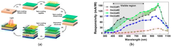 - Liu, Y.; Ji, Z.; Li, Y.; Fan, H.J.; Mai, W. Spectrum-shaped Si-perovskite hybrid photodetectors for hyperspectral bioimaging. Photonics Res. 2021, 9, 1734–1744. [Google Scholar] [CrossRef]