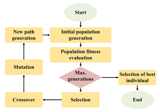 Flowchart of genetic algorithm approach used in identifying the best sequence for optimized path generation.
