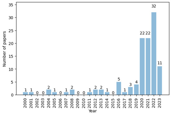 From a scientific production point of view, all 114 of the studies eventually obtained were conducted between 2000 and 2023. Figure 2 illustrates the evolution of the number of publications. The number remained consistently low (0–5) until 2020, after which there was a notable increase in the number of papers (22). This is probably due to the need to study the spread of COVID-19 on a global scale. Most studies originated from the USA (33.33%, 38/114), China (14.91%, 17/114), Europe (20.18%, 23/114), and other countries in Asia (17.54%, 20/114). The results of research questions Q1 to Q9 are explained below.