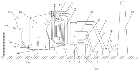 The Retal-type G.V., widely used in the Cuban sugar industry, was considered a combustion technology, with 12.5 and 16.7 , with pressures of 1.9 MPa. Table 3 and Figure 1 show this technology’s technical characteristics and typical installation scheme.