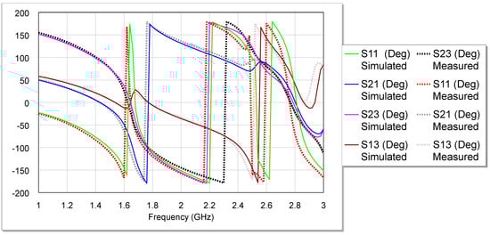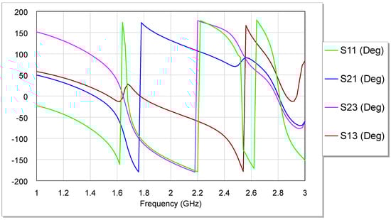 Phase response for the projected diplexer for each S-parameter.