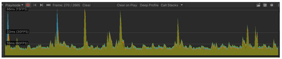 This results in real-time, two-way communication between the physical and virtual environments via the OPC-UA protocol. The use of this protocol minimizes data latency, as data reception is around 16 milliseconds, as shown in Figure 7, and the acquisition times of a set of variables between the DT and the physical environment are monitored through the OPC-UA protocol. This allows the physical system to be monitored from both environments (3D SCADA and DT).
