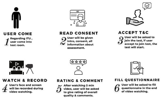 As previously mentioned, QoE assessment techniques can be divided into subjective, objective, and hybrid assessments. Subjective measurements are time-consuming but can directly measure user satisfaction levels. They usually consider the user’s preferences, age, individual psychology, viewing history, etc. Additionally, they fully depend on each user’s perspective and differ depending on the user; hence, they are processed using mathematical models (i.e., mean, standard deviation, and regression) to handle each perspective bias. Subjective measurements can be categorized into single and double stimuli based on the presence of samples.