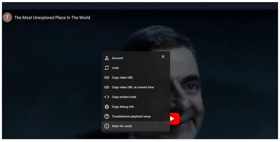 This study also contributes to the exploration of dynamic adaptive streaming, as discussed by Pereira and Pereira []. They considered the influence of content selection strategies on QoE as empirically tested by Sackl et al. []. In addition, our research is in line with Hoßfeld et al.’s [] quantitative analysis of YouTube QoE using crowdsourcing. Our research uses adaptive streaming because it significantly improves QoE, as Oyman and Singh explained in their paper []. Yao et al. [] explained the importance of using real-world bandwidth traces to obtain accurate HAS performance results. In our study, we used real-world bandwidth traces, in line with their testing. We used stats-for-nerds monitoring to evaluate and estimate video QoE for viewers.