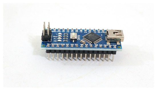 The ESP-WROOM-32 operates at a supply voltage of 3.3 [V], and its operating temperature ranges from −40 [°C] to 85 [°C]. In addition to Bluetooth and Wi-Fi, it also incorporates Bluetooth Low Energy (BLE), enabling users to connect mobile phones or transmit BLE messages. The model of the board used for the research is presented in Figure 4, which is a powerful and reliable development board from all analytical perspectives of this experimental model. The software that was developed is subsequently implemented on this component, constituting the heart of this research.