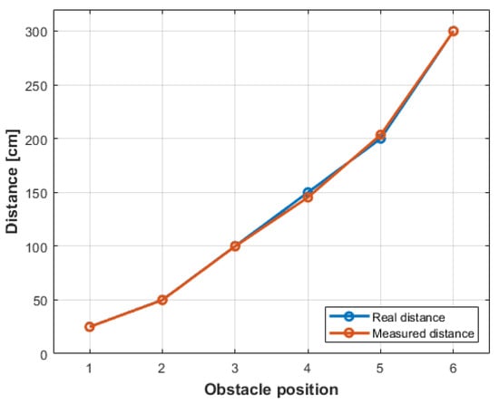 Comparison between real distances and those measured by the ultrasonic sensor.
