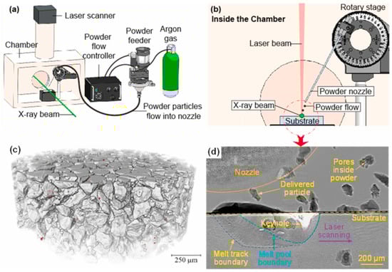 - Wolff, S.J.; Wang, H.; Gould, B.; Parab, N.; Wu, Z.; Zhao, C.; Greco, A.; Sun, T. In situ X-ray imaging of pore formation mechanisms and dynamics in laser powder-blown directed energy deposition additive manufacturing. Int. J. Mach. Tools Manuf. 2021, 166, 103743. [Google Scholar] [CrossRef]