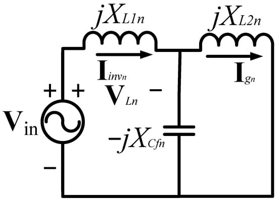 An LCL filter analysis was performed for any harmonic n. The circuit to be analyzed is shown in Figure 7. The analysis omits the grid voltage since the grid provides only the fundamental harmonic.