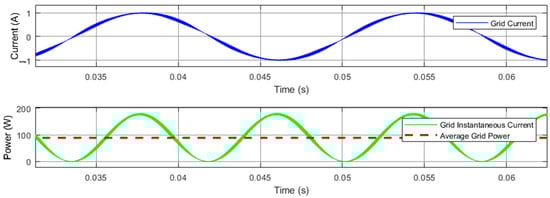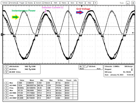 Figure 24 shows the grid voltage, L1 current, and the instantaneous power. The data obtained are shown in Table 5.