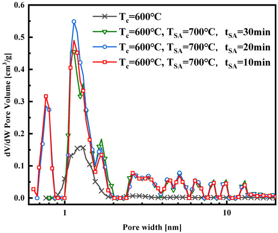 Pore size distribution of the samples synthesized with different activated temperatures.